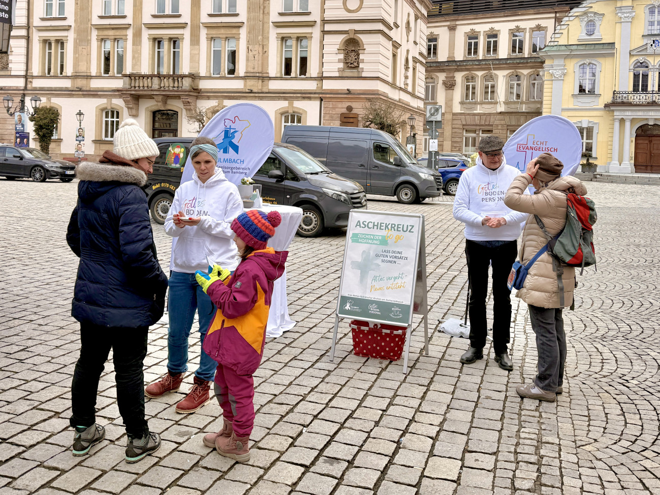 Mitten auf dem Marktplatz setzten die Evangelische & Katholische Kirche mit Dekan Friedrich Hohenberger und Pastoralreferentin Eva-Maria Steltenkamp-Hüsser ein sichtbares Zeichen – für Mut in Zeiten, in denen viele schwarzsehen 🕊️